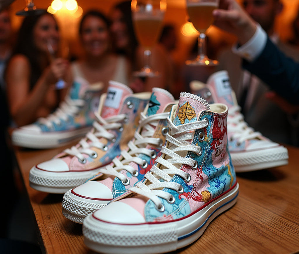 Absolutely. Our goal is to tell your story through design. Whether it’s a meaningful quote, a shared symbol, or an artistic representation of your love, we can incorporate it into your custom shoes.