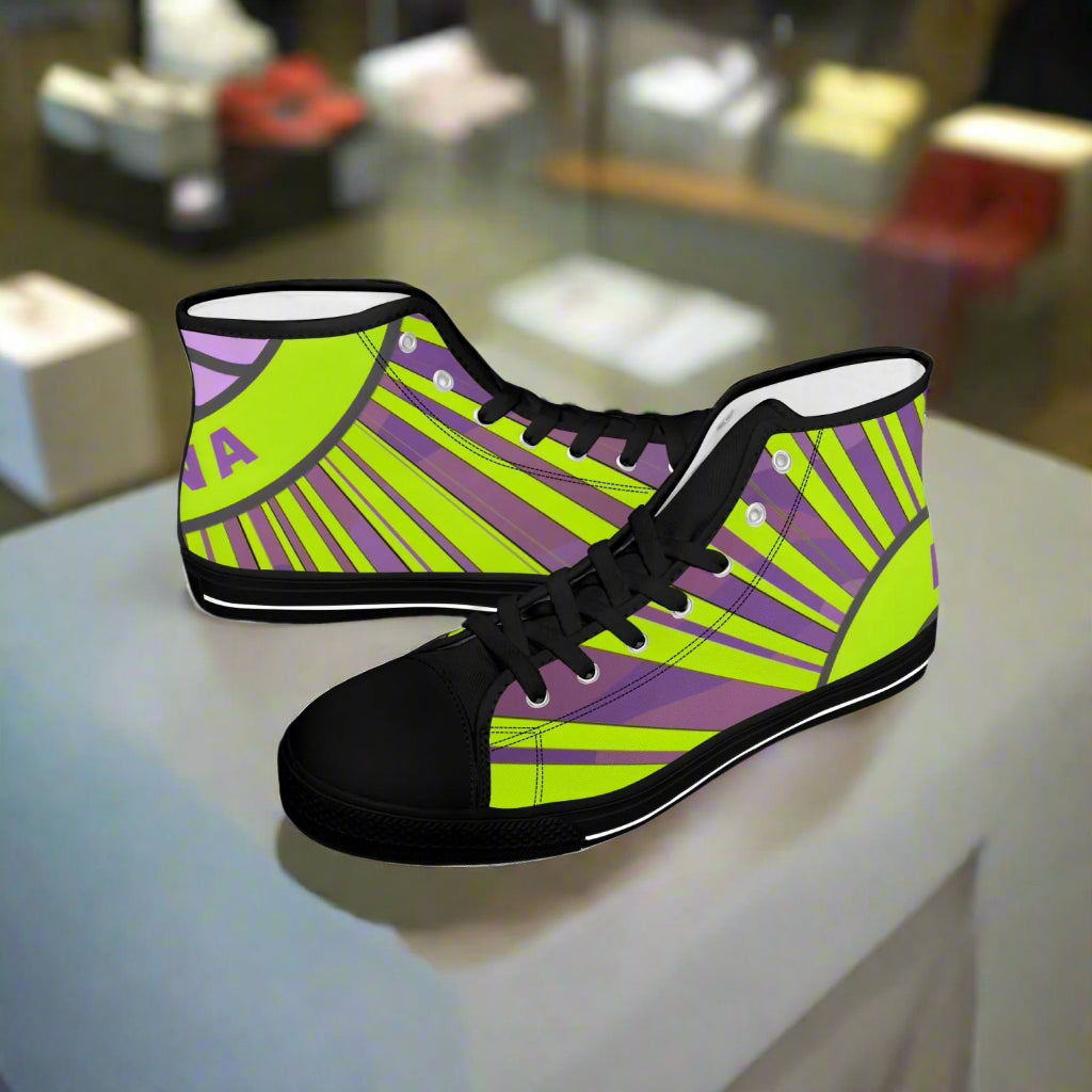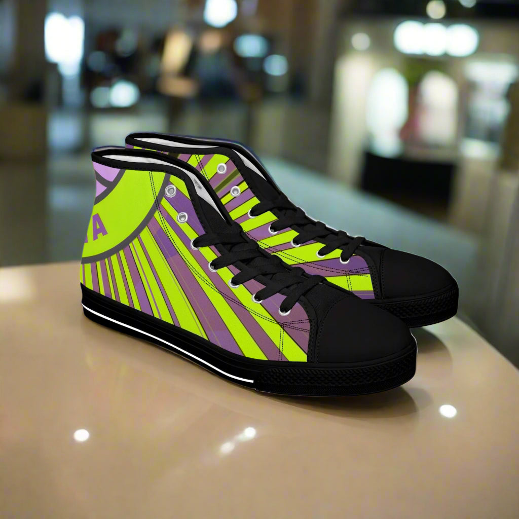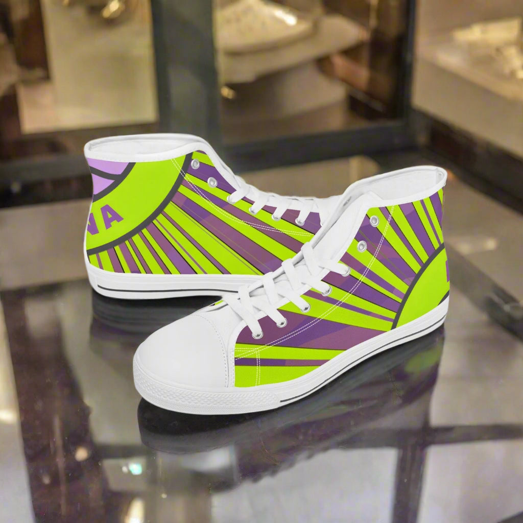 The foundation for the Alma High Top design stemmed from a photograph I captured of a sunflower, a personal favorite. Loaded the photo into my work bench, tweaked the sun flower image and eliminated the black center, incorporating the distinctive Alma Logo in its place.