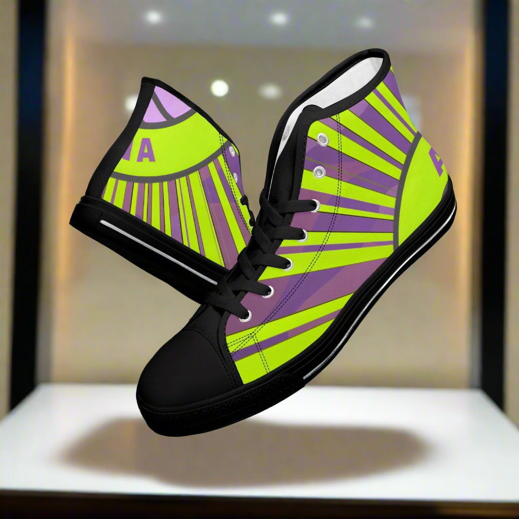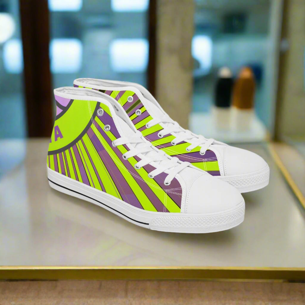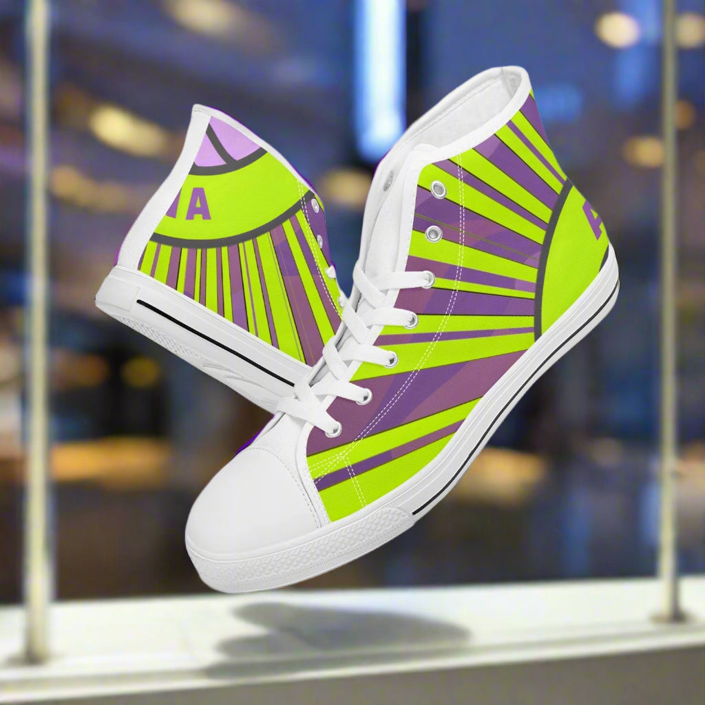 The foundation for the Alma High Top design stemmed from a photograph I captured of a sunflower, a personal favorite. Loaded the photo into my work bench, tweaked the sun flower image and eliminated the black center, incorporating the distinctive Alma Logo in its place.