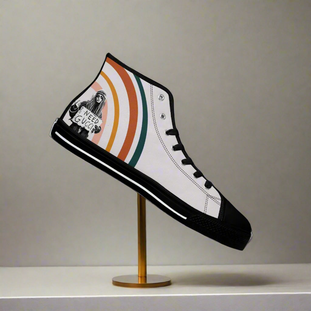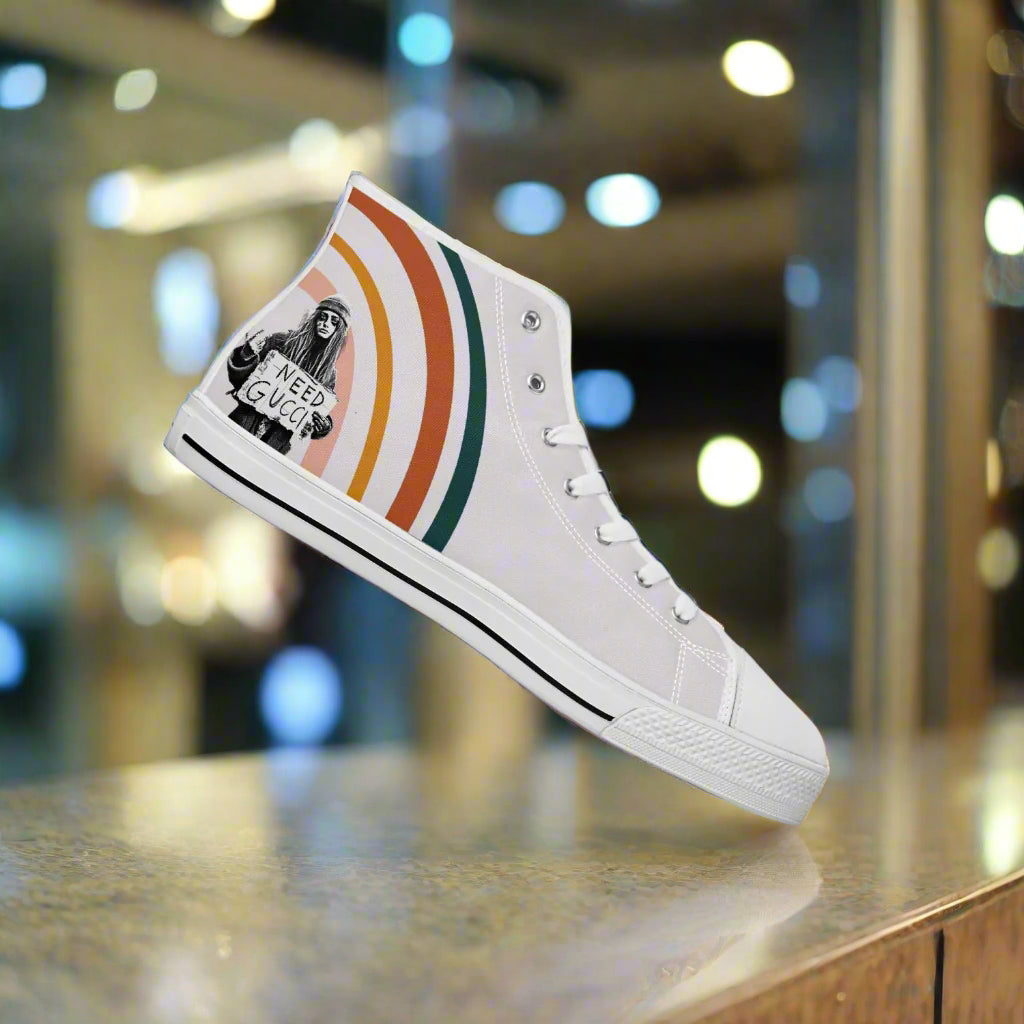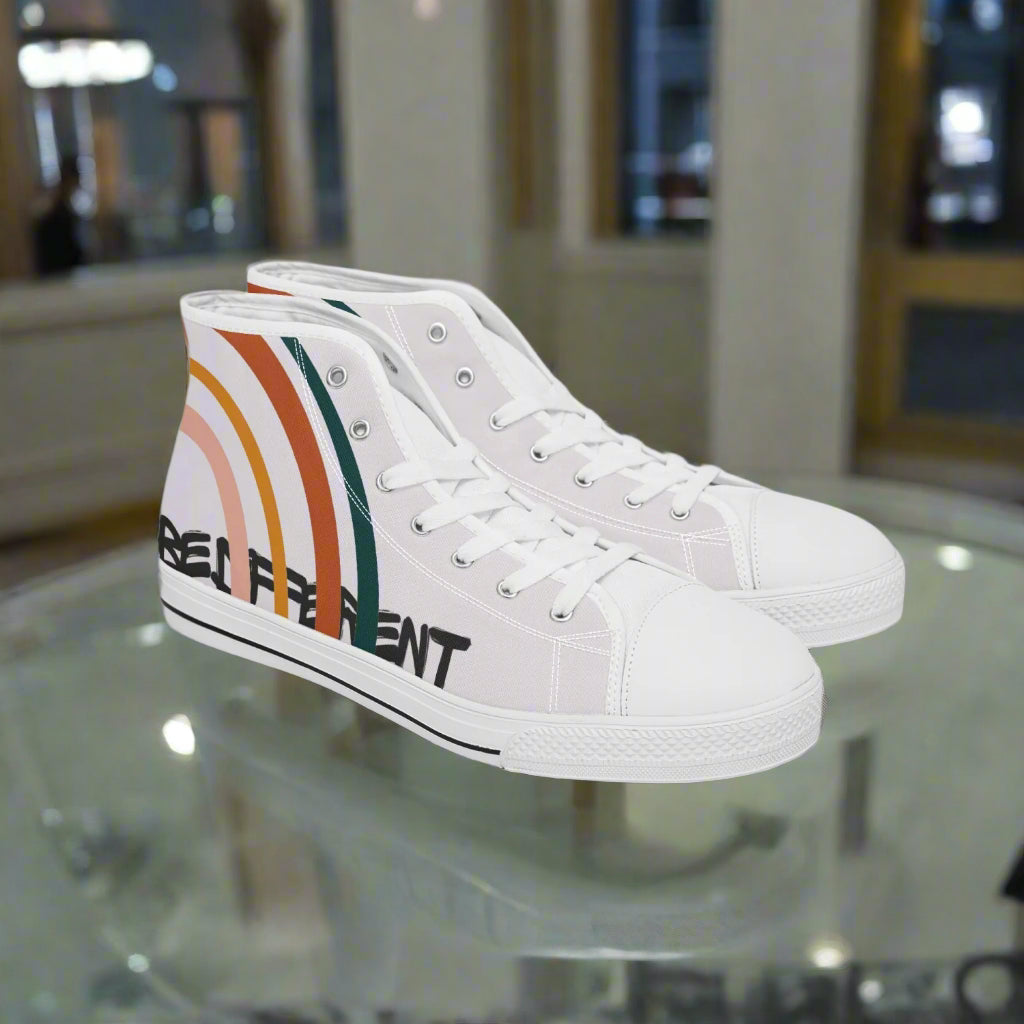 Crafted with comfort and durability, they're ready for wherever your journey takes you, whether it's conquering city streets or venturing beyond the ordinary. The design itself [describe the design without mentioning rainbow colors, focusing on its unique details], making them a conversation starter and a confidence booster. They're not just shoes; they're a symbol that you define your own rules and inspire others to do the same. So, lace up, step off the beaten path, and let your individuality shine bright!