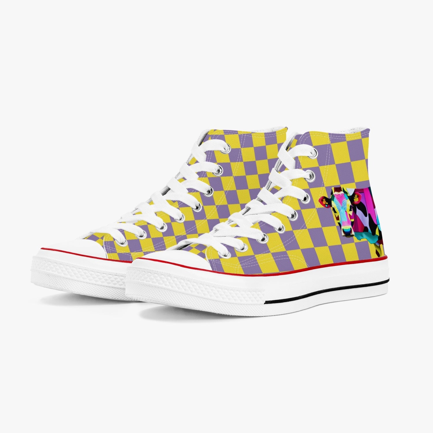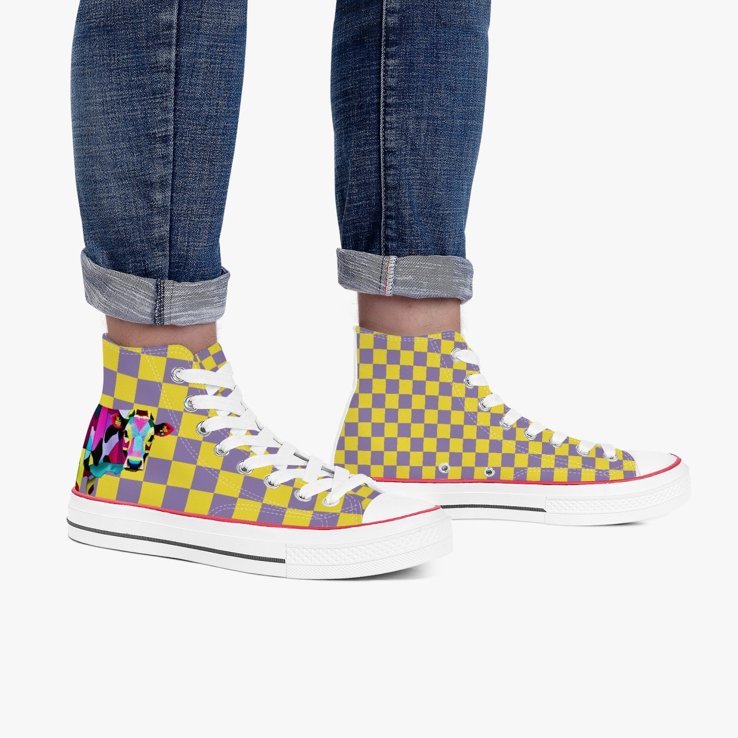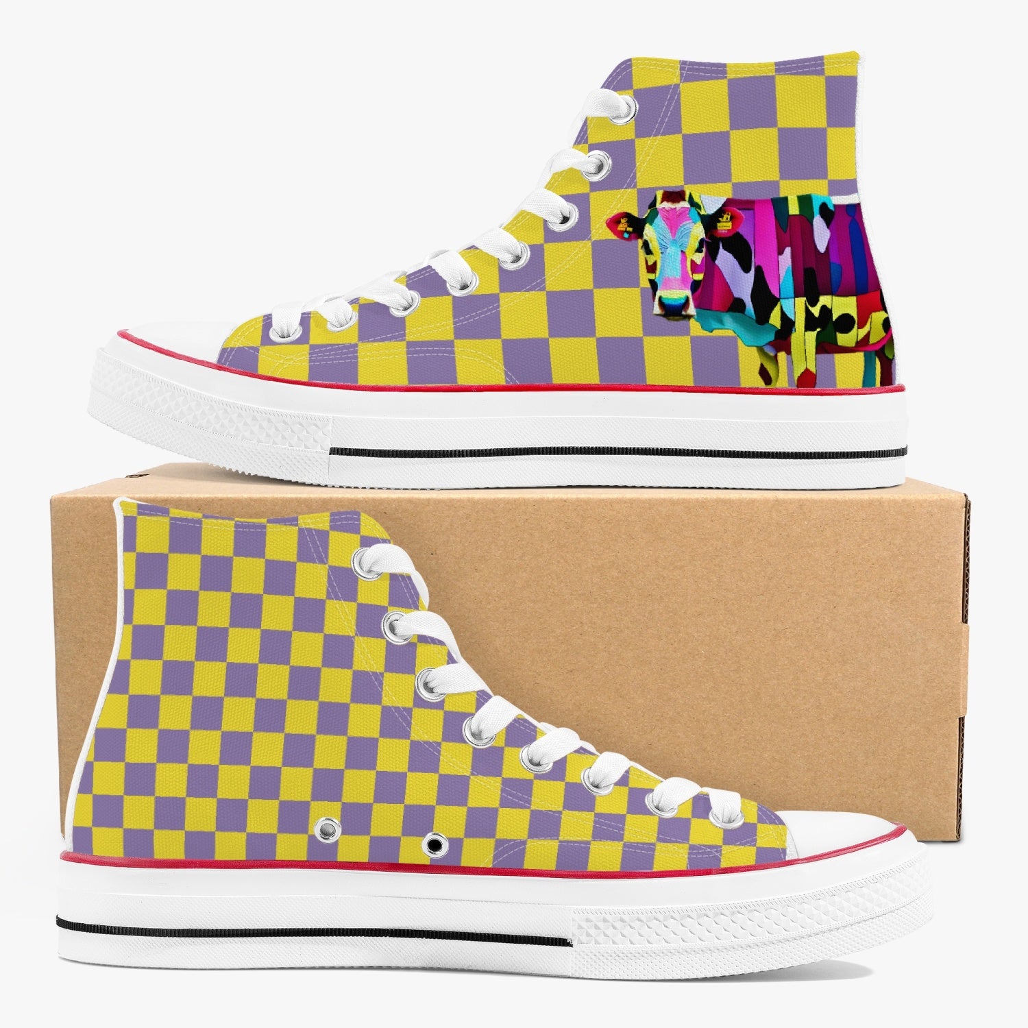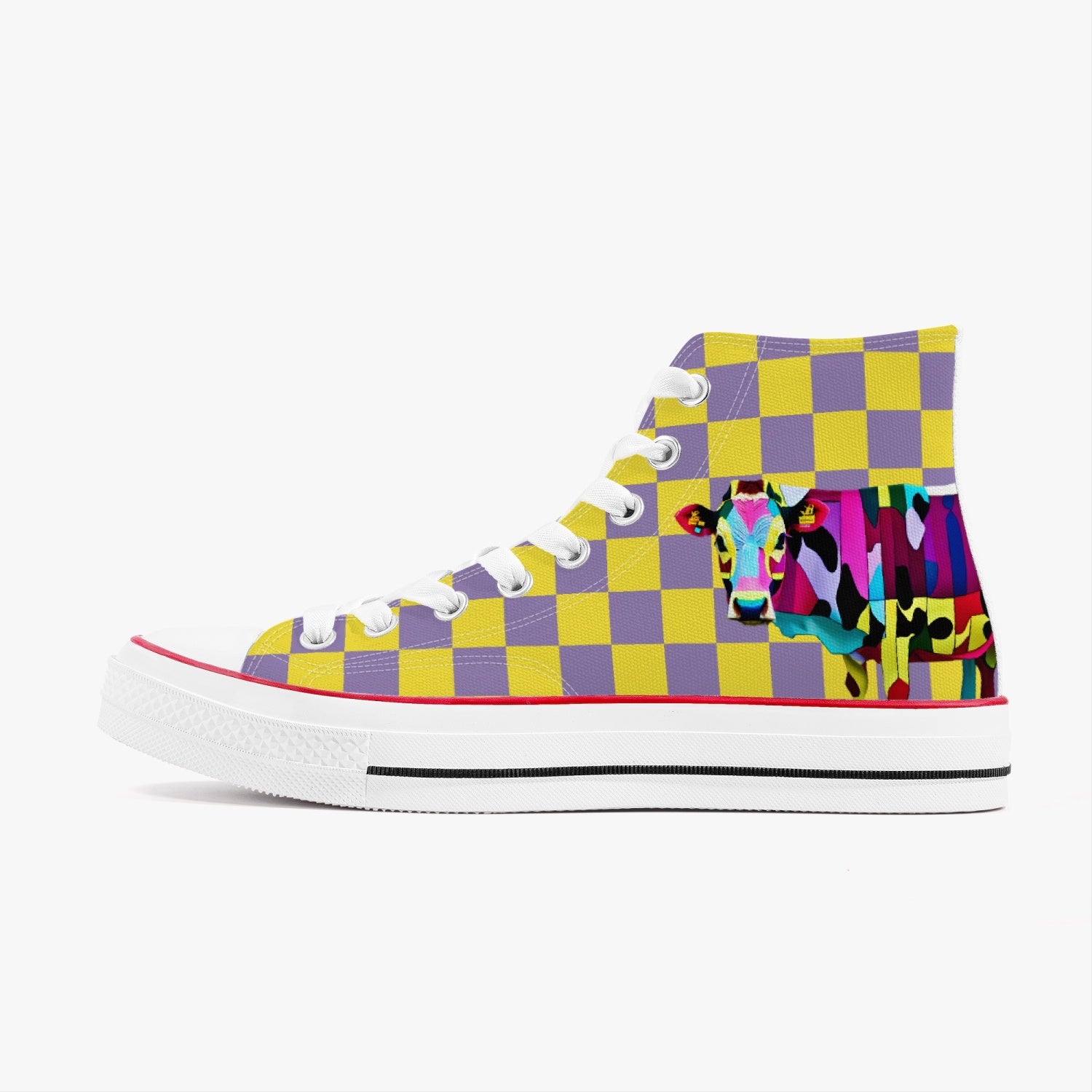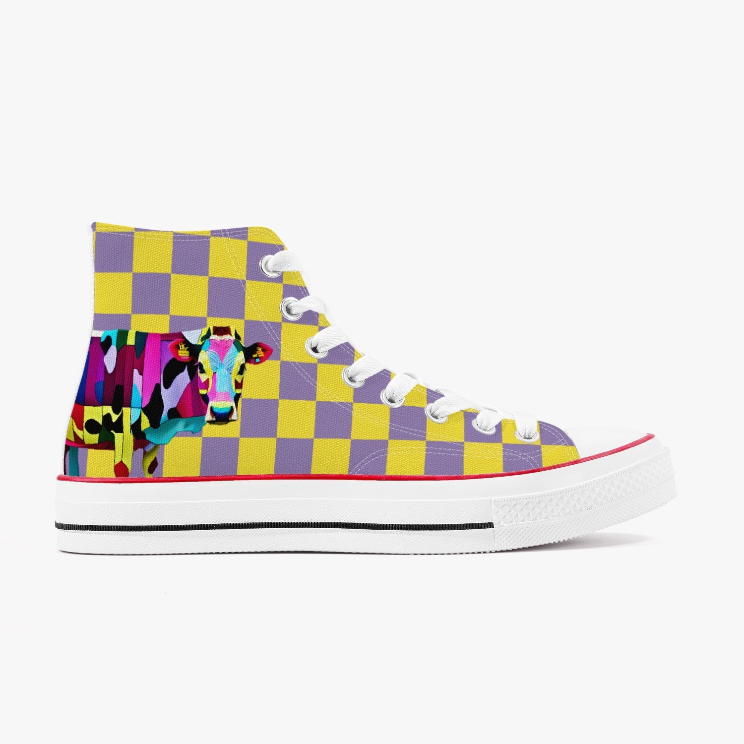 Rock the party with these unique Bovine Stompers Canvas High Tops! Show off your bovine style with a unique design that combines fashionable flair with luxurious comfort. You'll be sure to stand out from the herd in these trendy kicks!
