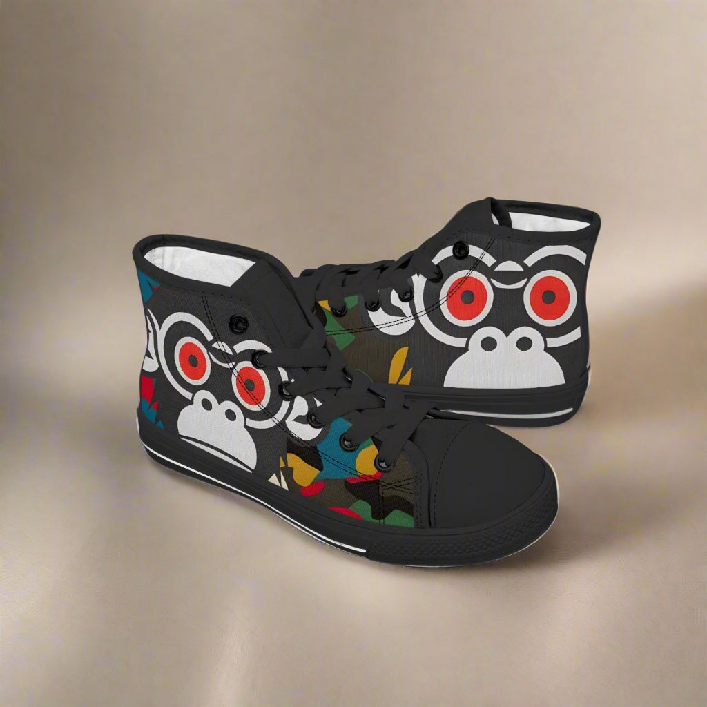 These Kids Banana Seeking Monkeys High Tops will be sure to satisfy all your child's wildest cravings! Not only are these high tops an eye-catching fashion statement, they're also sure to be a hit with every monkey-loving youngster! Get your hands on 'em quick before these bananas get away!