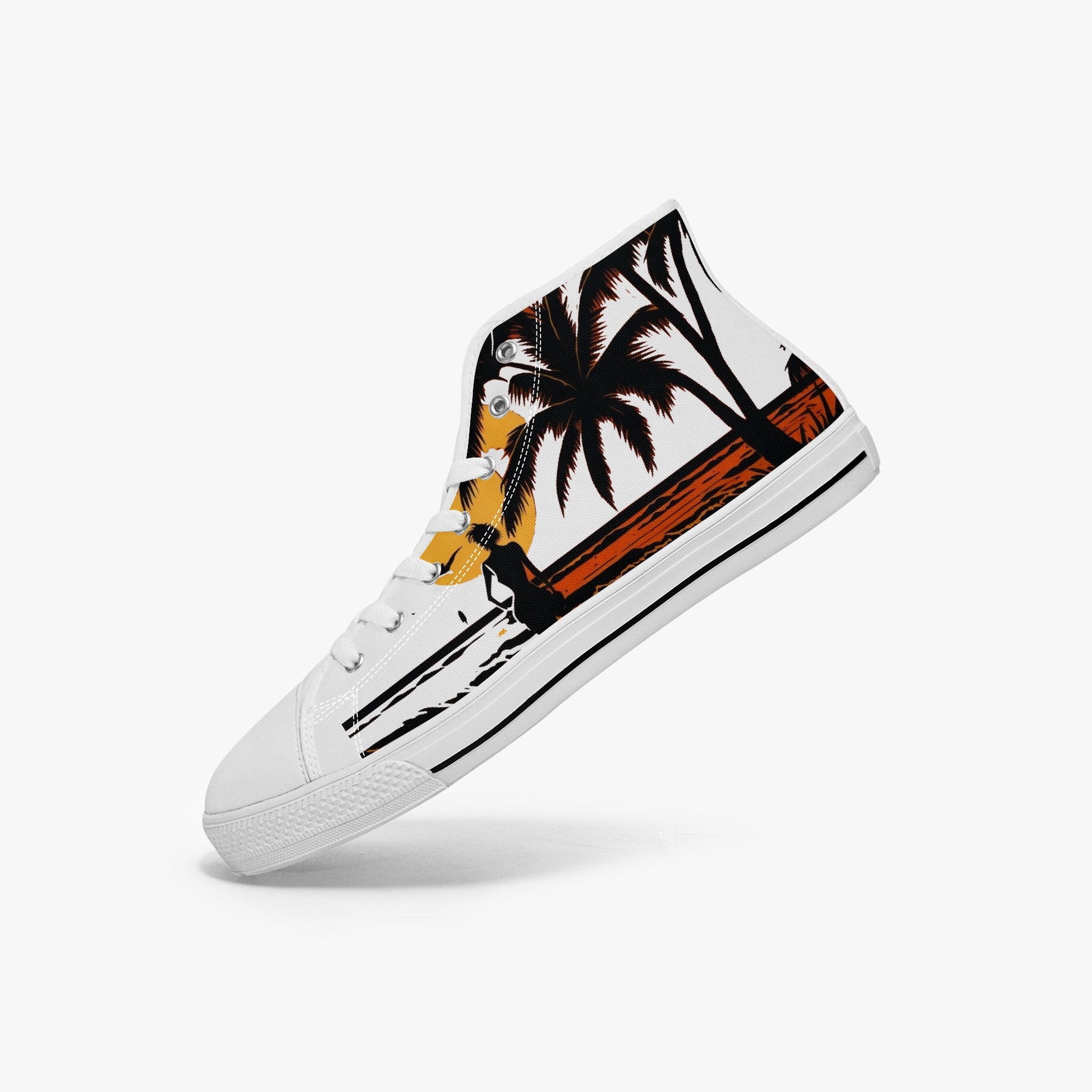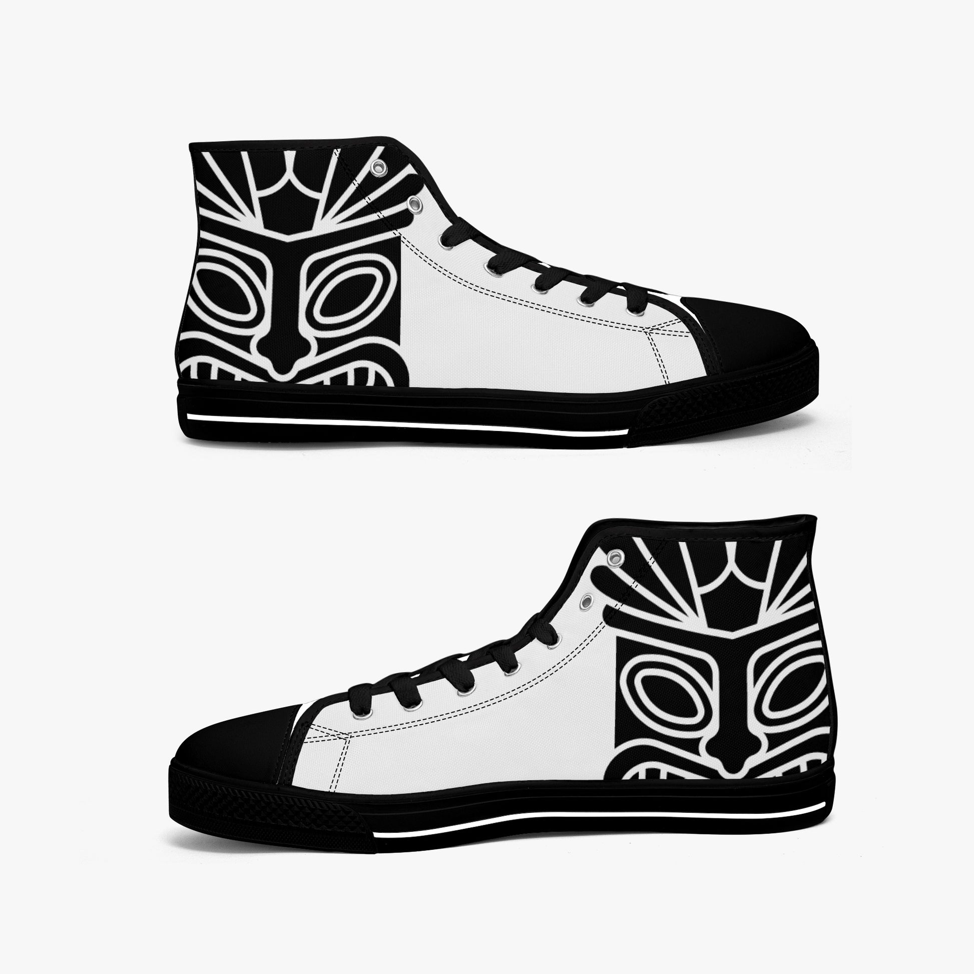 Mahalo Tiki High-Tops, where style meets island vibes. These shoes are inspired by the enchanting beauty of Hawaiian culture and the spirit of aloha. Crafted with meticulous attention to detail, the Mahalo shoes blend comfort, durability, and stunning design elements. Slip into a pair of Mahalo shoes and let the vibrant colors, tropical motifs, and laid-back charm transport you to the serene shores of Hawaii. Whether you're strolling along the beach, exploring the city, or simply enjoying everyday adventures, Mahalo shoes are your perfect companion, bringing a touch of paradise wherever you go. Experience the magic of the islands with Mahalo shoes and embrace the spirit of aloha with every step you take.
