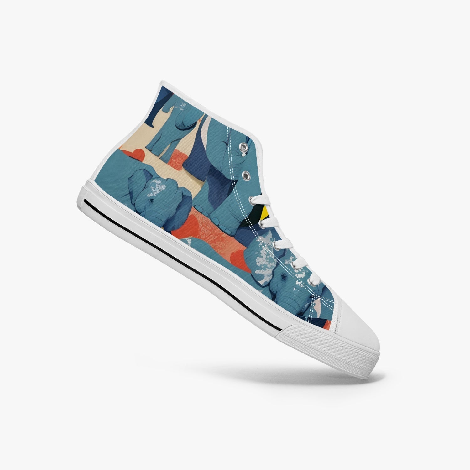Elevate your fashion game while becoming a true advocate for positive change. Stand with us as we unite to protect and preserve these iconic creatures. Your purchase isn't just about style; it's a statement, a commitment to our planet, and a step towards making a difference. Wear the Save the Elephants Tembo Canvas High Tops proudly, knowing that you're contributing to a brighter future for elephants and our world.